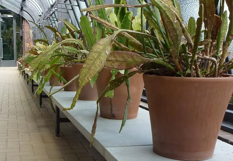 Bis circa Ende März dürfen die Pflanzen beschnitten werden, denn sobald es wärmer wird, sollte man auf das Schneiden verzichten. Entfernt werden sperrige oder abgestorbene Pflanzenteile. Manche Pflanzen haben aus Lichtmangel schon lange Triebe gebildet, die sollten eingekürzt werden. Wenn nötig, erhält die Pflanze einen Formschnitt.