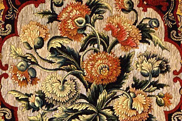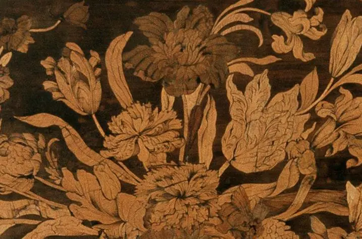 Florale Ornamentik war an den europäischen Höfen seit der Barockzeit beliebt. Dabei griff man auf chinesische Vorbilder zurück: Seidentapeten waren bevölkert von blühenden Bäumen und Sträuchern. Große Wandteppiche und Kleidung aus edlen Stoffen glichen blühenden Gärten. Mit dem Rokoko erhielten Architektur und Mobiliar noch verspieltere Dekorationen: Zwischen Rocaillen wuchsen kleine Stuckblüten an Wänden und Decken. Feine Einlegearbeiten aus Holz, etwa in Weikersheim, zeigen ganze Blütensträuße.